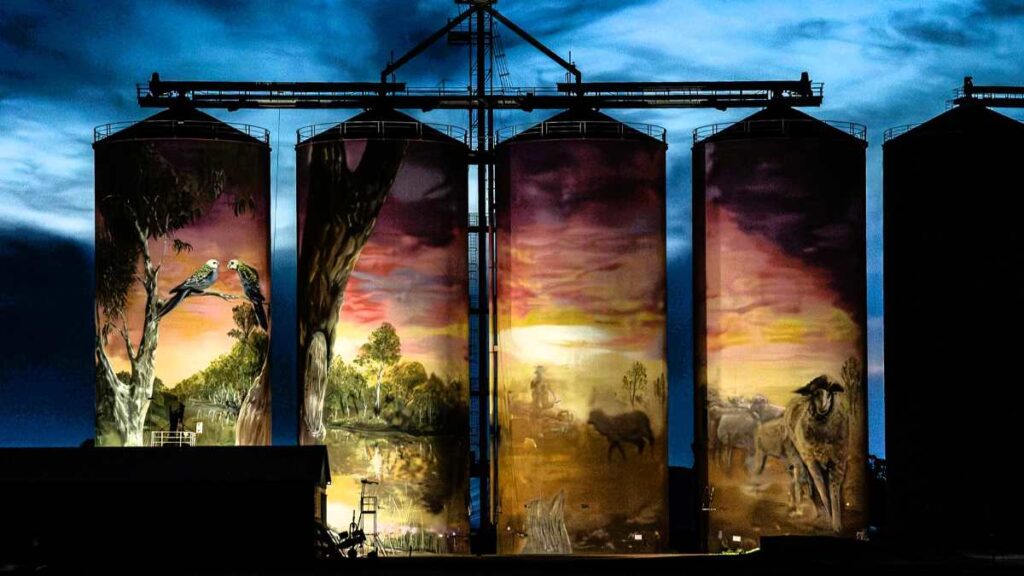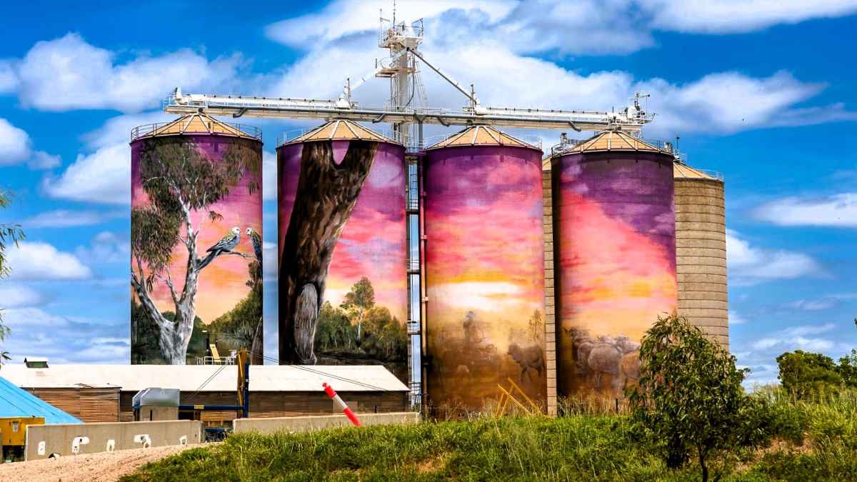 Ease into the morning, soak up the river views, and maybe throw in a fishing line – Golden Perch and Murray Cod are commonly reeled in here. Then, take the short drive through grain country to Thallon, a quiet town that has earned a roar of attention thanks to its colossal painted grain silos.