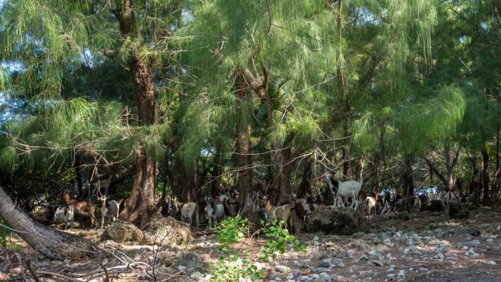 Traffic is almost non-existent. With a population of around 400, “peak hour” might involve passing one other scooter and exchanging a wave. The biggest hazards are fallen coconuts, wild goats, and pigs.