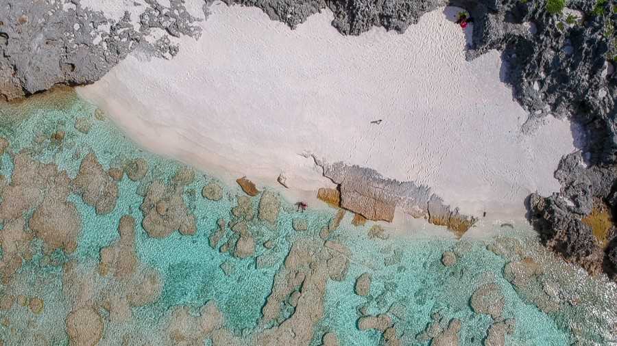 The coastline is characterised by makatea (fossilised coral), rising over six metres in spots. Nestled between these cliffs are completely deserted, white sandy coves to explore. Families can hire either scooters or a car and drive the circle island track, exploring the many deserted beaches.