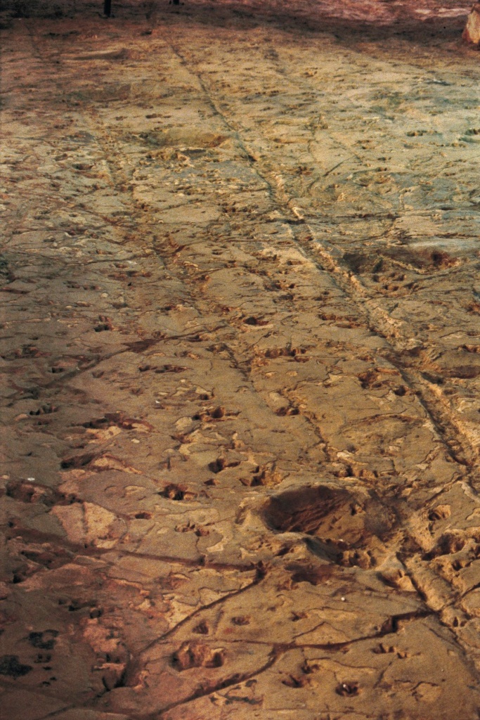 The footprints were until recently, thought to be from a herd of small dinosaurs being chased by a large therapod around 95 million years ago. However, a recent study suggests that the tracks could have been made by swimming and wading, not running.