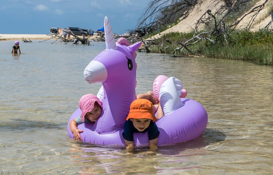 Aside from ‘riding the creek’, if you’ve got your own 4WD, many families get in early to get a prime park right beside the creek for the day. If your kids are a little older, they can head up the boardwalk themselves and float all the way back down to your vehicle. It’s also nice to take the time to simply stroll along the boardwalk, which takes you inland through Banksia and Pandanus trees alongside the creek.