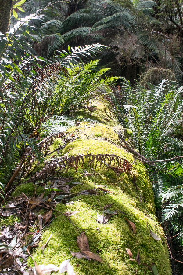 This section of the walk is extremely beautiful with giant ferns, fallen trees and logs covered in bright green moss. There is a seat or two along the way should you wish to sit down and take it all in.