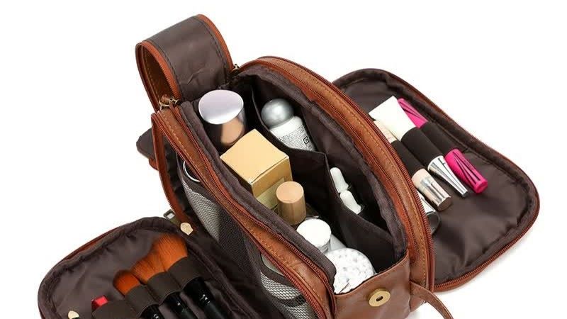 The bag features multiple compartments, elastic loops for brushes and bottles, and zippered sections to keep toiletries secure. It’s compact enough to slip into your carry-on but roomy enough to fit all your essentials, whether you use it for makeup, skincare, or general travel organisation. There’s even a sturdy top handle for easy carrying.
