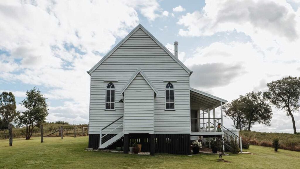 Today, guests can stay in either the charming cottage or the beautifully restored chapel, both perched high on Mt Alford with sweeping views of the Scenic Rim. Just 90 minutes from Brisbane, it’s a stay that blends history, romance, and country charm in equal measure.
