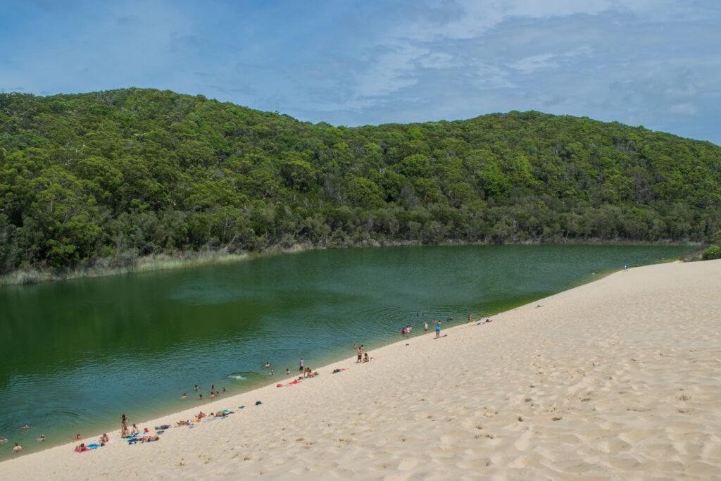 Another lesser known camping area on Fraser Island is One Tree Camping area. Nestled behind the sand dunes, you’ll go to sleep and wake up to the sound of the rolling surf. This is another top spot to visit the southern end’s freshwater lakes and hikes.