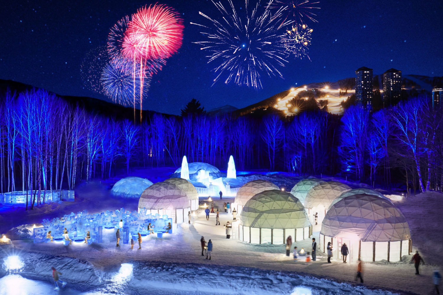 The resort caters to skiers and snowboarders of all levels and offers a plethora of family-friendly activities. Enjoy a snow sled park, tandem and kids snowmobiles, ice fishing on Tomamu pond, snow picnics and more