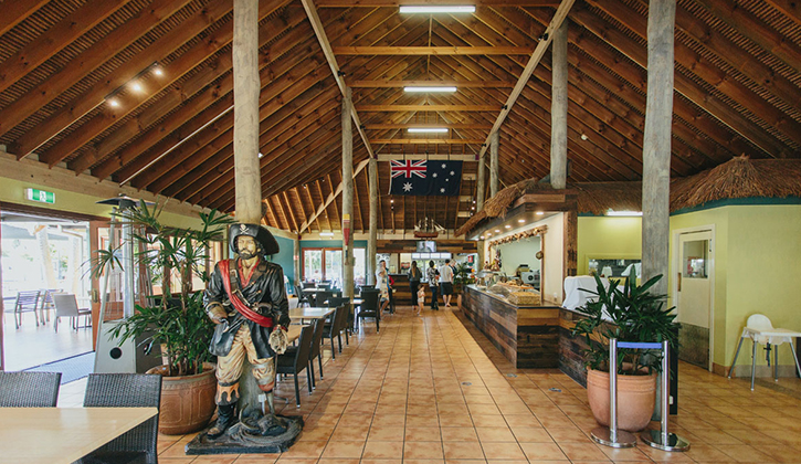 Find Galleons Bistro within the NRMA Treasure Island Holiday Resort grounds. This restaurant is family friendly and open 7 days a week for breakfast, lunch and dinner. The location is superb, right next to the jumping pillow and splash park. This means parents can enjoy a meal while keeping a watchful eye on the kids. As an added bonus, there is a licensed bar.