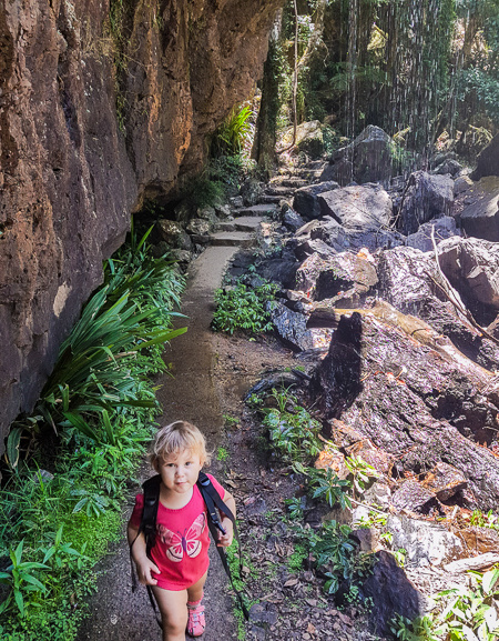 If your kids are too young to walk 4km (like mine were), you will definitely need a carrier of some sort or be prepared to piggyback them. There are opportunities to swim in rock pools, walk past rock clefts and walk behind waterfalls. Stroll among ancient palms and tree ferns, and take in the view from the fantastic lookouts.