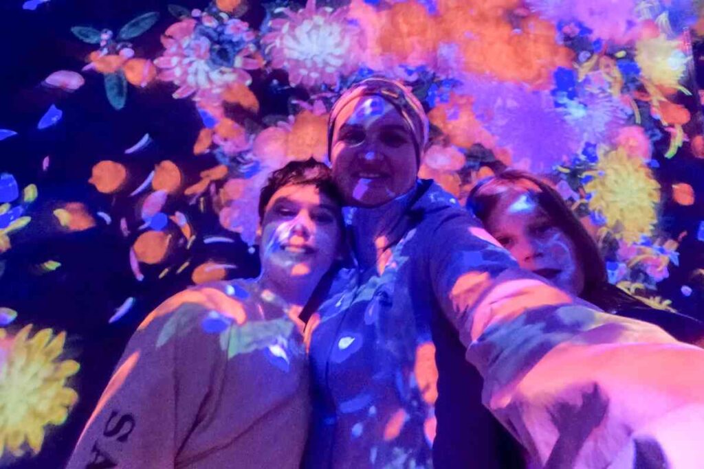 Wading barefoot through knee-deep water while digital koi swam beneath our legs, only to explode into what appeared to be flower petals when we reached out to touch them, was not how I pictured our first day in Japan going, but that’s the wonder of visiting teamLab Tokyo with kids for you.