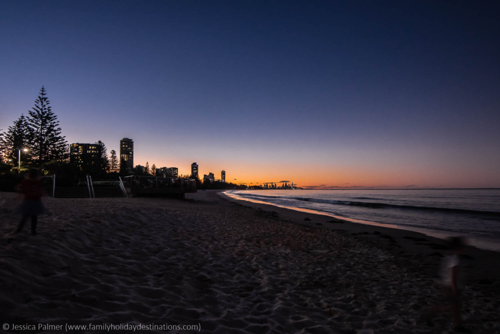 Burleigh Heads is a great place to watch the sun go down on the Gold Coast with a laidback vibe and great family-friendly foreshore entertainment. Sitting on the sand watching the sunset behind the skyscrapers off in the distance is blissful!