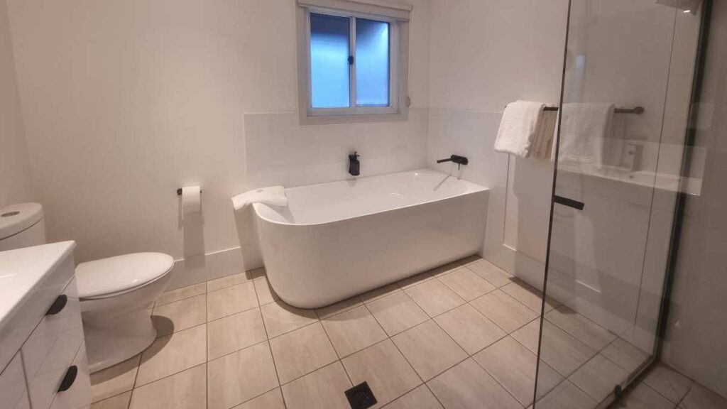 There’s something for everyone here, from campsites to glamping tents and villas for those who prefer a little more comfort. We stayed in a three-bedroom poolside villa and I honestly can’t think of one negative thing about it. The main bathroom is large enough to feature both a shower and a bath, and there is also a small ensuite attached to the main bedroom.